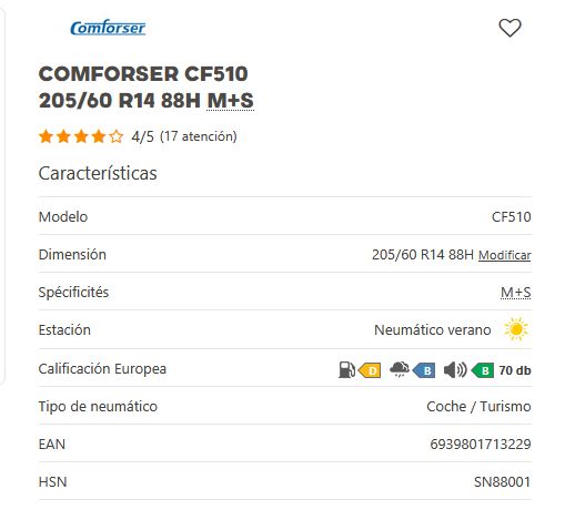 Añadir comparar Añadir deseos Neumaticos CONFORSER Comforser CF510 185/70 R14 88H M+S 0 Comentario(s)  Añadir comparar Añadir deseos 42,59 € Añadir al Carrito