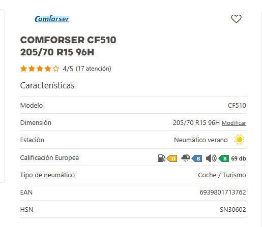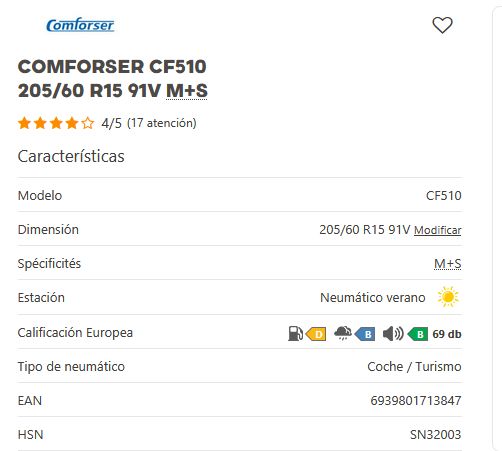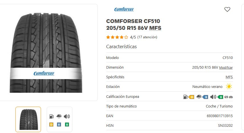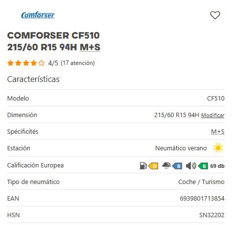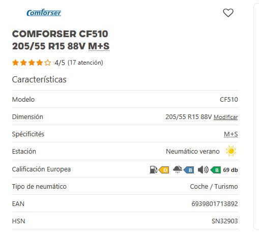 Añadir comparar Añadir deseos Neumaticos CONFORSER Comforser CF510 205/50 R15 86V MFS 0 Comentario(s)  Añadir comparar Añadir deseos 47,00 € Añadir al Carrito