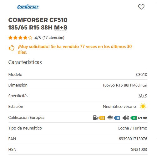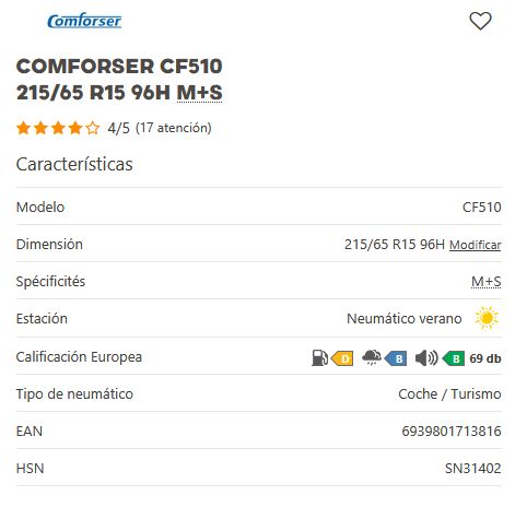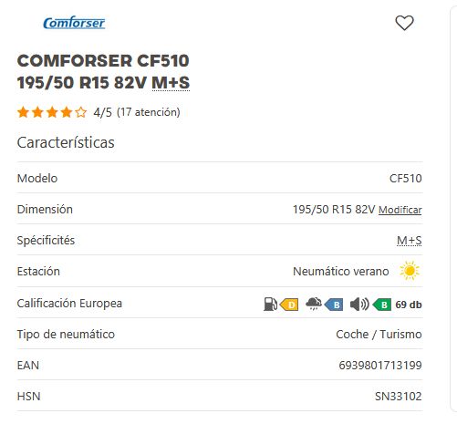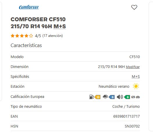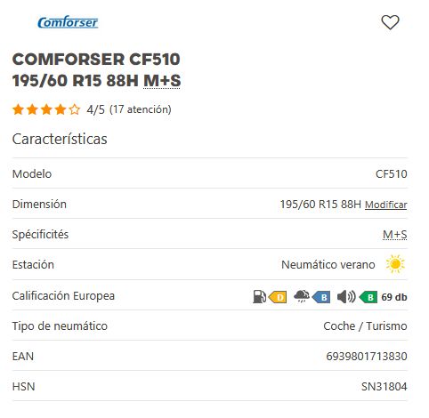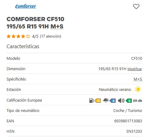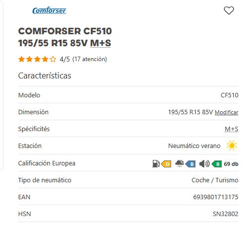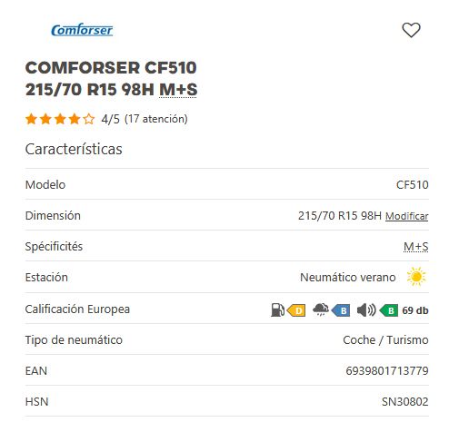 Añadir comparar Añadir deseos Neumaticos CONFORSER Comforser CF510 195/55 R15 85V M+S 0 Comentario(s)  Añadir comparar Añadir deseos 45,30 € Añadir al Carrito