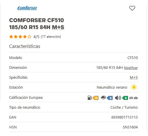Añadir comparar Añadir deseos Neumaticos CONFORSER Comforser CF510 185/60 R15 88H M+S 0 Comentario(s)  Añadir comparar Añadir deseos 42,39 € Añadir al Carrito