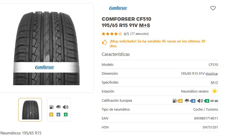 Añadir comparar Añadir deseos Neumaticos CONFORSER Comforser CF510 195/65 R15 91H M+S 0 Comentario(s)  Añadir comparar Añadir deseos 46,50 € Añadir al Carrito